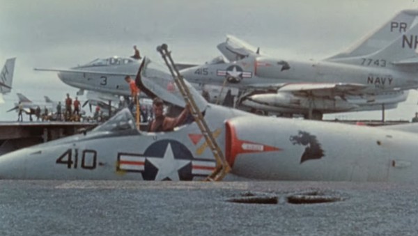 Florence Delay nomme ici la première émotion ; le bonheur lié à la vue de ces trois enfants. L’image, sans pour autant être positionnée dans le temps, approfondit sa signification. Et c’est dans l’opposition avec l’image suivante que se crée ce qui me semble être une première profondeur pour la séquence. Après un nouveau plan noir, on bascule sur une brève vidéo d’avions de guerre américains en préparation. Le tissage sémantique se complexifie. Il est en effet difficile d’associer le bonheur d’une image d’enfance à l’annonce d’une guerre imminente. L’innocence doit faire face au lourd poids de la violence du monde.