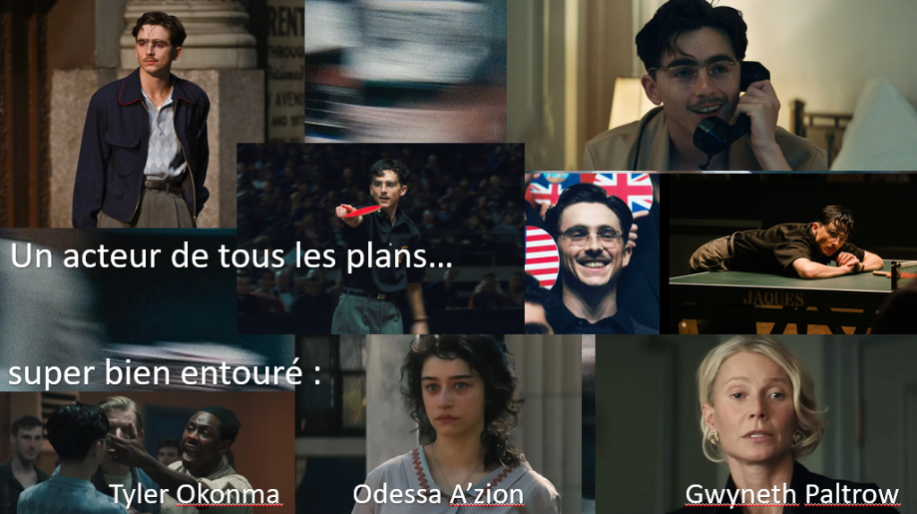 Parmi les scènes marquantes, il en est une où il fait raconter à un collègue pongiste rescapé d’Auschwitz une anecdote incroyable qui nous mène à un plan malaisant, sur le moment le spectateur se demande Mais qu’est-ce que cette histoire vient faire là ? sauf qu’après coup, on se rend compte que ça donne une profondeur au film, ça nous rappelle le contexte. La Deuxième Guerre mondiale n’est pas loin et du coup, ce qui se dégage de la profusion de pistes lancées par le film, c’est la rage de vivre plutôt que de survivre, l’envie « d’exploser la vie » de Marty Mauser. « Je suis le pire cauchemar d’Hitler, dit-il. Regardez-moi, je suis là, je suis au sommet, je suis la preuve ultime de la défaite d’Hitler » On est juste après la guerre et il y a encore aux États-Unis un antisémitisme virulent, d’ailleurs il se fait traiter de youpin. Ça fait penser à The Brutalist : dans ce film-là aussi, un antisémitisme post Shoah s’exprimait sans complexe. Le film montre aussi les tensions entre Américains et Japonais, les brûlures de la guerre ne sont pas éteintes.